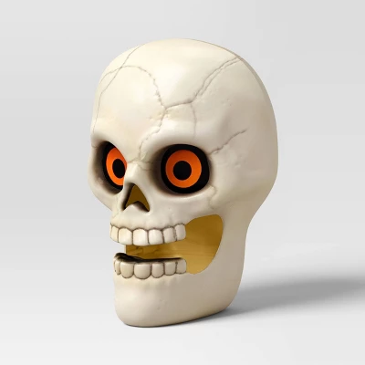 Create a creepy Halloween display in your home nook with the Skull Mister Halloween Decorative Prop from Hyde and EEK! Boutique™. Made from plastic, this Halloween decorative skull features cutout eyes, nose and teeth that light up with a battery to add an eerie glow to your Halloween scene. Suitable for indoor or sheltered outdoor use, you can place it on your entryway console, in your front yard or along a walkway to delight party guests and trick-or-treaters.