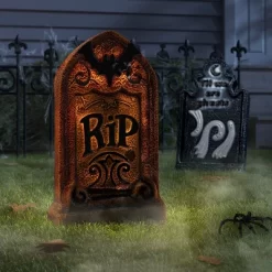 Add chilling graveyard vibes to your Halloween decor with this 21-Inch Plastic Tombstone Halloween Decorative Prop from Hyde and EEK! Boutique™. Made from styrofoam, this decorative prop showcases a textured gray tombstone adorned with the fun text “RIP” and a bat motif in black. This battery-powered tombstone has a timer function for a customizable display option and is suitable for both indoor and outdoor use.
