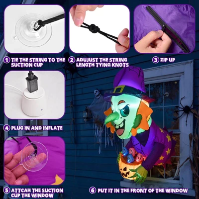 【Scary Witch Candy Pot Design】Standing at 3.5 feet tall, this Halloween inflatable Scary Witch is the perfect addition to your eerie holiday decor. Its menacing design, complete with a scary witch candy pot, will bring a spine-chilling touch to your Halloween setup. Halloween Decorations Outside Halloween Inflatable Decor Outdoor 【Bright LED Lights for Nighttime Visibility】Equipped with built-in ultra-bright LED lights, this inflatable Scary Witch is highly visible even from a distance. The lights create a ghostly glow that enhances the spooky atmosphere of your yard or garden, making it a standout decoration on Halloween night. Halloween Decorations Outside Halloween Inflatable Decor Outdoor 【Premium Quality and Durability】Crafted from high-strength, tear-resistant, and waterproof polyester, this inflatable decoration is designed to withstand the elements. Its excellent stitching ensures it stays inflated, even after prolonged use, making it a reliable and durable choice for outdoor Halloween decor. Halloween Decorations Outside Halloween Inflatable Decor Outdoor 【Easy to Use and Store】With a powerful built-in air pump, it inflates fully within minutes once plugged in. The bottom zipper allows for quick deflation, and its compact size makes storage simple and convenient for reuse year after year. Halloween Decorations Outside Halloween Inflatable Decor Outdoor 【Stable and Secure Installation】Halloween inflatable comes with everything you need to keep it firmly in place. Including suction cups, ropes, and stakes for secure anchoring, ensuring the Scary Witch stays upright and steady, even in windy conditions. Halloween Decorations Outside Halloween Inflatable Decor Outdoor