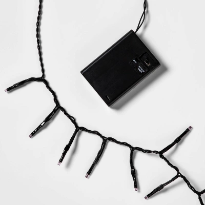 These versatile 60-Count LED Dewdrop Halloween Orange Garland Lights from Hyde and EEK! Boutique™ add instant magic to any indoor space. The delicate orange LED lights in a garland style with black wire look great draped on a mantel, framing a window or hanging above a bed. The attached battery pack requires three AA batteries (not included) and can be concealed within your decorations to let the lights truly stand out.