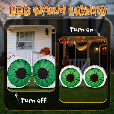 - 【Eerie Glowing Green Eyes】 Each 3-foot tall inflatable features bright white LED lights behind green eyeball designs, creating a haunting glow perfect for nighttime Halloween atmosphere.