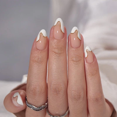 Cute, natural, and elegance. These words come to mind at first glance when you see these nails. Pre-designed French style saves manicure time and with a playful tiny gold edge,beautiful!! Great for gift giving!!They are made with high-quality materials that are comfortable and fully customizable to your nail, using included tools. Attached with non-toxic and non-damaging glue and jelly tabs.Design: Tiny GlodenShape: AlmondMaterial: Soft GelQuantity: 32 Nail Tips, 16 SizesLength: ShortIncludes:32*nail tips, 1*2G glue, 1*mini nail file, 1*cuticle stick, 32*jelly tabs, 1*clean pad, 1*manual