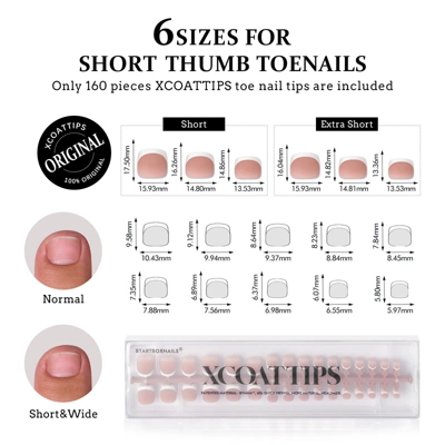 Fit for different size Toenails BedProduct Function:1: Easy to use, save time, save money2: Pre- French Designs helps everyone get a perfect French Nails at home3: The toe nails is 4X thicken, help to hold toenails in place to prevent ingrown4: There are different colors, fit every skin tonesColor Include: Brown/PinkSize: 16 Sizes