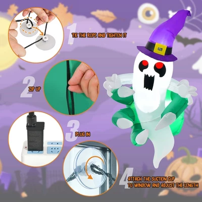 - Easy to Use & Store: With 3 suction cups, the lighted ghost can be easily attached to the window and change its angle by adjusting the length of the rope. After holiday, you can fold it up for easy storage. Helpful tips: Use the included suction cup to stick on the windowithsmooth wall/door.