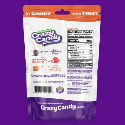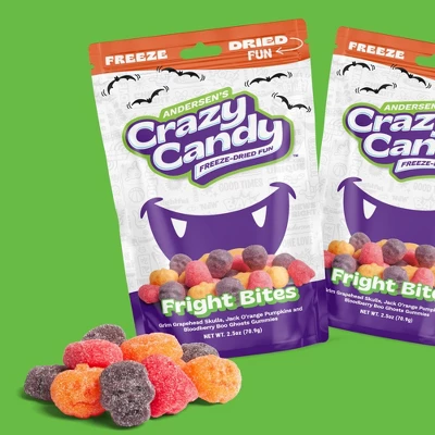 Step into the spooky season. With Andersen’s Crazy Candy freeze-dried Fright Bites – a wickedly delicious freeze dried Halloween mix. Grim Grapehead Skulls, Jack O’ range Pumpkins, and Bloodberry Boo Ghosts deliver bold, creepy, flavors and a chillingly crisp bite that’s scary good. These limited edition treats make Halloween snacking a scream.