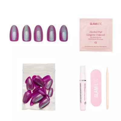 Step up your nail game with Glamnetic’s Berry Fizz Nail Set. This ultra-dimensional style features an iridescent magenta hue with the most mesmerizing velvet metallic finish you’ll love. Plus, its oval shape always looks elevated, yet wearable, for any occasion.