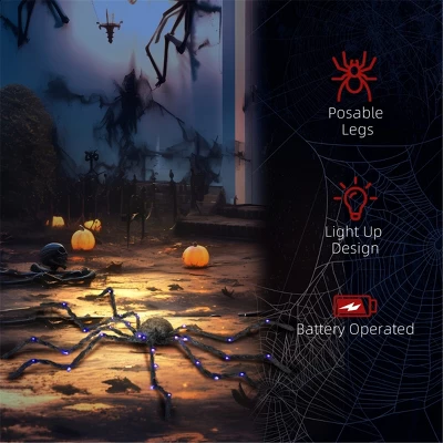 Features: – Light-up oversized spider with bendable legs – It features ghastly purple glowing legs – For indoor and outdoor use – for flexible placement – No assembly required Specification: – Color: Black – Light Color: Purple – Materials: Steel, Polyester, Plastic, Raffia – Overall Dimensions: 47.2″ L x 7.9″ W x 3.1″ H – Overall Height: 0.3′ H – Power: 0.26W Package Includes: – 1 x Halloween Decoration