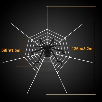 Do you want to decorating your home for Halloween? It is your best choice to choose this giant four-foot spider. Scare trick-or-treat and guests with giant spider Halloween decoration. When the light irradiate the spiders, it will light up the red eyes and watch you. That would give your home a creepy look and guests are scare! In addition, the stretch spiders web can provide your perfect Halloween decorations extra point. Moreover, this big monster spider would also be a great gift and room decoration for any kid or adult who enjoys creepy-crawly things. Feature£º *¡¾Scary Halloween Decoration Spider¡¿- Giant realistic scary 59¡¯¡¯ spider with long black hairy and creepy red eyes, very realistic looking. Attach to the spider web, haunt house, roof, window and tree, create a perfect spooky atmosphere for your Halloween, super easy to scare trick-or-treat, make a huge hit at your Halloween party! ? *¡¾Super Stretch 126¡¯¡¯ Spider Web¡¿- Spider webs are one of the easiest ways to add Halloween spookiness to your house or party. Hang this huge spider web outdoors to add an eerie accent to your haunted house or Halloween party, enshroud with the super stretch cobweb for an ultra creepy look outdoor and indoor decorations. ? *¡¾Flexible Fake Spider Legs¡¿- All legs can be bent and adjusted into different poses as per need, secure attachment a breeze, holds up great in rain and winds. Spider legs can be fold in compact, easy to store. ? *¡¾Applicable Situation¡¿- Perfect for your Halloween decorations indoor outdoor, Halloween yard decor, party decoration, spooky entertainment and other themes occasions. They’ll make the perfect addition to your collection of Halloween decorations and create more scary atmosphere. ? *¡¾Easy to Install¡¿- Easy to install with hook and steaks, and Made from weather-safe polyester threads with hand-knotted joints, very sturdy and durable. Specification£º Product Type: Halloween Spider Decorations with Spider Web SetSpider Color: BlackSpider Web Color: WhiteSpider Size: 150*30*5cm/59*11.81*1.97inchSpider Web Size: 3.2m/126inchSpider Weight:204g/0.45lbsSpider Web Weight:128g/0.28lbsPackage Size: 30*30*10cm/11.8*11.8*3.94inPackage Weight: 336g/0.74lbs Package Contents£º 1*Spider1*Spider Web