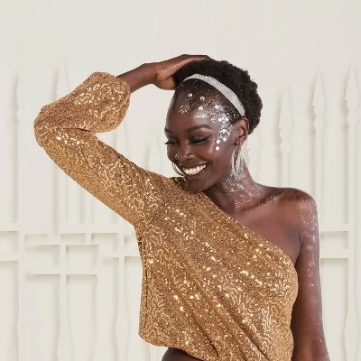Add fun sparkle and flash to your costume or your kid’s using this Halloween Glitter and Gems Makeup Kit Silver from Hyde and EEK! Boutique™. This kit includes adhesive gems and a tube of glitter gel, perfect for bringing a scintillating shimmer to face paintings, costumes, props and more.
