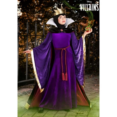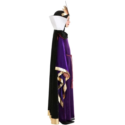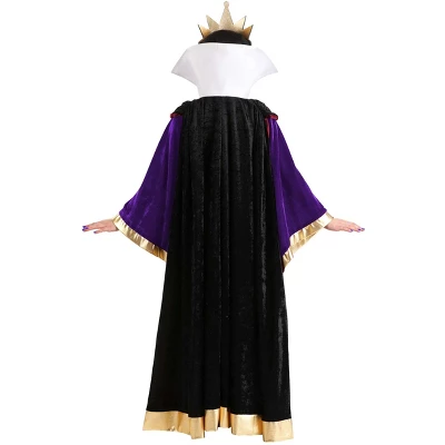 Let your child embrace their inner royal villain with this Child Evil Queen Costume, inspired by the iconic Disney character from Snow White and the Seven Dwarfs. This show-stopping ensemble is perfect for young fans who appreciate a flair for the dramatic, just like the Evil Queen herself! With every wicked detail meticulously designed, your child will be ready to step into the role of Disney’s most stylish villain, captivating onlookers with their royal presence at any Halloween event, themed party, or cosplay adventure. This enchanting Evil Queen costume includes all the essential pieces to bring the powerful monarch to life. The stunning purple velvet dress features flared sleeves and a zipper at the back for easy wear, ensuring that your child can make a quick transformation into the wicked queen. The striking hood slips over the head for a regal touch, while the black and red crushed velvet cape, complete with a satin-lined stand-up collar, adds an extra dose of royal grandeur. The gold metallic trim on the sleeves and the cape’s hem add a luxurious finish, making this costume as captivating as the queen herself. No queen would be complete without her signature accessories, and this Disney Snow White Villain Costume doesn’t disappoint. A braided rope belt with tassels cinches the waist, while the foam-backed metallic gold crown sits proudly atop the head, secured with an elastic band for comfort. The cape fastens at the neck with a faux gemstone brooch, lending a regal air to the ensemble. Whether your child is practicing their royal wave or plotting to be the fairest of them all, this Wicked Queen Robe will make their villainous dreams come true!