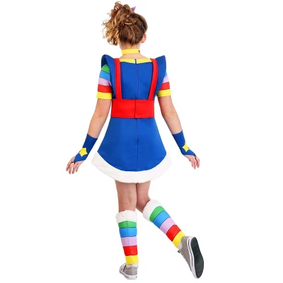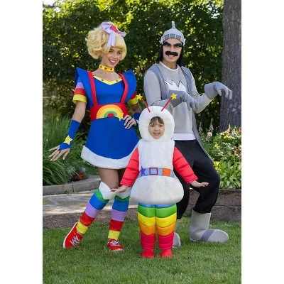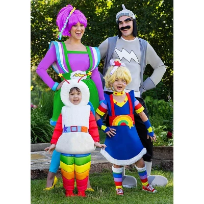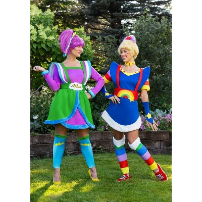 Fun Costumes Rainbow Brite Costume for Girls:There isn’t much like the magic of a rainbow cast across the sky and bringing cheerful color to all who see it. That’s part of why we’re so excited to bring this Rainbow Brite costume to life. Bring together the classic look of this cheerful, cartoon character by letting your child spread cheer in this Girl’s Rainbow Brite outfit. The smile she wears is going to inspire one on everyone else, too!Your little one can dive into the magical world of Rainbow Land with this officially licensed Rainbow Brite costume. Painstakingly crafted with attention to detail, this ensemble ensures they will embody the spirit of the beloved 80s character, bringing joy and color to any occasion.Our officially licensed Rainbow Brite costume features a short blue dress with high shoulders and the iconic Color Belt with attached red suspenders. The sleeves have rainbow stripes that match the legwarmers that also have a white fur trim. The satin choker also looks just like Rainbow Brite’s necklace thanks to the bright yellow color and red stars. Fingerless gloves and a purple bow complete the outfit!Product Details:94% polyester, 6% spandex; 100% polyester fabric, foam & faux furDress has back zipperFoam-backed suspenders attached at shouldersSuspenders support printed belt that fastens at back with hook & loop stripsDress has faux fur hemline edge bandSatin hair bow has felt star at center, is mounted on metal alligator clipFingerless gloves have printed stars, elastic finger loopFoam-backed leg warmers have faux fur cuff at upper edgeFabric choker has printed stars, hook & loop fastener at back. About Us:Fun Costumes are exclusively made by us and begin with passion, teamwork, and industry expertise – proof that with the right people even a simple idea can grow into something incredible. We started in a small garage in Minnesota, and now we’re creating costumes for people all around the world.