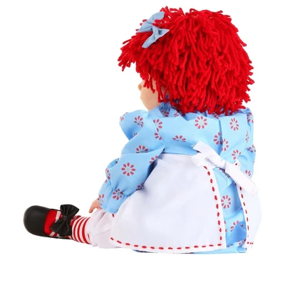 We have the perfect Raggedy Ann Costume for Infants. The dress has a hook & loop fastener at the center back, elastic at the neckline, and sleeved cuffs. The apron is sewn to dress at shoulder seams and has the same-fabric waist ties & elastic on the top edge. Bloomers have an elastic waistband & cuffs. The wig is yarn sewn to a soft foam-backed cap with a 3″ wide fabric hair bow attached to a metal alligator clip. This storybook costume is officially licensed!