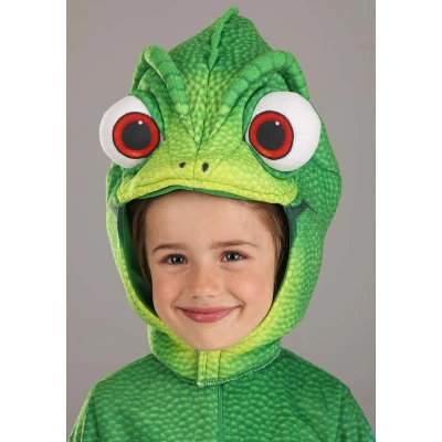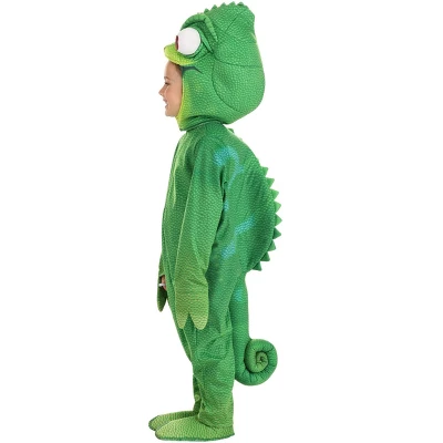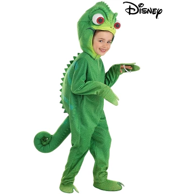 Disney’s Tangled Pascal Costume Toddler Chameleon Outfit:This Pascal costume from Disney’s Tangled is an officially licensed look created in-house by our team of devoted designers. It comes complete with a soft, jumpsuit that is printed with Pascal’s green color tones. A foam-stuffed curly tail is attached to the back along with back bumps and fins. Zip your kiddo in and you can attach the matching headpiece with hook and loop fasteners. Help them step into the pair of foot covers so they can show off their chameleon toes.Product Details:100% polyesterJumpsuit has zipper down center frontMitts sewn to sleeve cuffs flip back to free handsFoam back has sewn on stuffed tailHeadpiece has stuffed eyes and foam in the topHook and loop fastener under the chinFoot covers have elastic bands to secure under your feet, hook and loop fasteners on the backOfficially licensed by Disney. About Us:Fun Costumes are exclusively made by us and begin with passion, teamwork, and industry expertise decades in the making. Our products are proof that with the right people even a simple idea can grow into something incredible. We started in a small garage in Minnesota, providing costumes to our local community, and now we’re creating costumes for people all around the world.