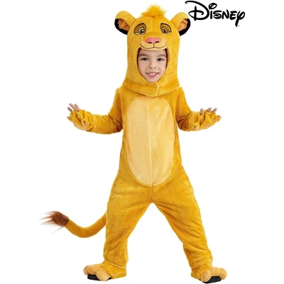 Roar into adventure with our Disney The Lion King Simba Costume, perfect for little ones who love to channel their inner lion! If your child’s favorite Disney character has them practicing their best lion roar and adding a bit of swagger to their step, then this Simba costume is just what they need to bring their imagination to life.Crafted from soft, low-pile faux fur, this jumpsuit offers both comfort and durability, making it ideal for Halloween or everyday play. It features an attached tail and matching elastic gloves and foot covers that move with them, enhancing every playful leap and pounce. The velour hood completes the look, showcasing Simba’s charming face with embroidered details and a soft mane, secured comfortably with hook-and-loop closures at the neck. Let your child step into the world of Pride Rock with this delightful costume!