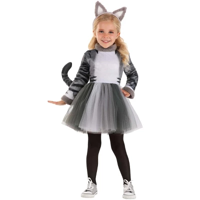 Prepare for an irresistible cuteness overload with the Toddler Girl’s Tabby Cat Halloween Costume Dress! This enchanting outfit is ideal for any occasion that calls for a touch of feline flair, turning your little one into the fluffiest and friendliest tabby cat around. With its cozy details and playful design, this costume strikes the great balance between comfort and charm.Crafted with a minky bodice that feels as soft as a kitten’s fur, this costume features a convenient zipper down the back for easy dressing. The collar and sleeve cuffs are made from plush fabric, adding an extra touch of luxury. The attached curly tail is fiber-filled, providing the ideal bounce as your little one leaps into action. The layered skirt showcases various shades of gray tulle over a satin dress bottom, adding a hint of shimmer with every twirl.Completing this purr-fect ensemble is a plush fabric-covered headband adorned with long faux fur ears that have minky inners. These soft and fluffy ears enhance the costume’s feline charm, ensuring your toddler looks like the cutest cat on the block.Whether your little one is chasing imaginary mice or strutting her stuff at a party, she’ll be the cat’s meow in this Toddler Tabby Cat Costume. Comfy, cute, and just a touch mischievous—just like any good tabby should be! Let her purr and play in style, because this costume is exclusively made by us and is great for any tiny feline fan.