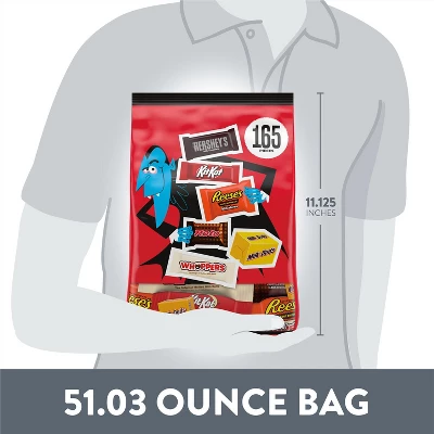 - Contains one (1) 51.03-ounce, 165-piece bulk variety bag of Hershey Assorted Flavored Miniatures Candy