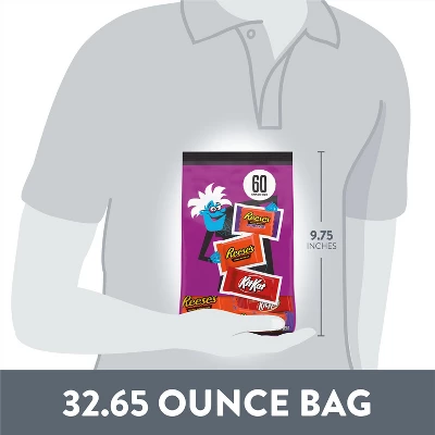 - Contains one (1) 32.65-ounce, 60-piece bag of KIT KAT® and REESE’S Assorted Milk Chocolate Snack Size Candy