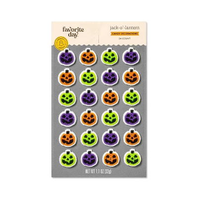 These 24-Count Jack-o’-Lanterns Candy Decoration from Favorite Day™ add a festive finishing touch to baked goods and more. Featuring fun Halloween-themed colors and shapes, these edible decorations can be used with cookie and house activity kits or added to any homemade treats. Great for Halloween parties, they’re tons of fun for all ages.