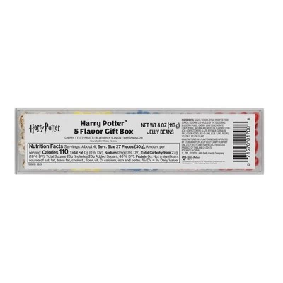 Illustrated with depictions of Harry, Hermione, Ron and Dumbledore, this 4 oz gift box is sure to charm any Harry Potter™ fan! It is filled with 5 flavors of Jelly Belly® jelly beans and we promise they are all good flavors. Flavors include Very Cherry, Tutti-Fruitti, Blueberry, Lemon and Toasted Marshmallow. This 5-flavor clear gift box makes a sweet gift for any Harry Potter fan!