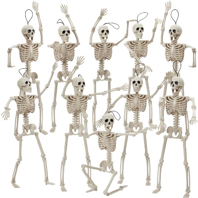 - 4 Posable Skeletons Sets Available: There are 4 kinds of skeleton sets available in our store: 1 PC, 2 PCS, 5 PCS and 10 PCS 16″ human skeletons props. You can choose according to your needs. Each small skeletons Halloween decorations will help you to create a bone-chilling scene that captivates trick-or-treaters and enhance the Halloween spirit in any setting.