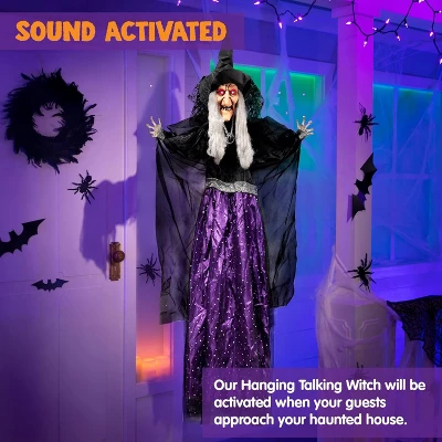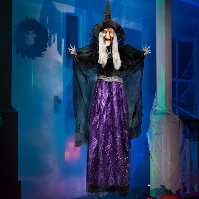 - Elevate your Halloween decor with our 47-inch Sound-Activated Light-Up Animated Witch Prop. This motion-sensitive witch delivers eerie sounds and glowing effects that bring any indoor or outdoor space to life.