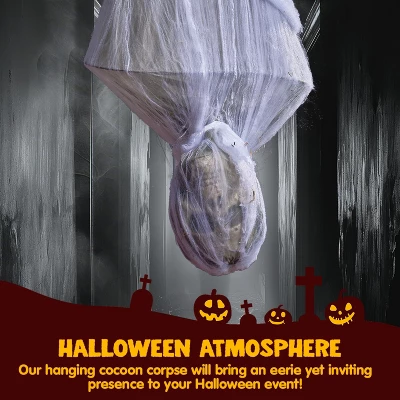 - Creepy Hanging Cocoon Decor. Transform any space into a haunted scene with this eerie halloween decorations hanging prop. Its realistic trapped-in-bag design instantly elevates your Halloween atmosphere.