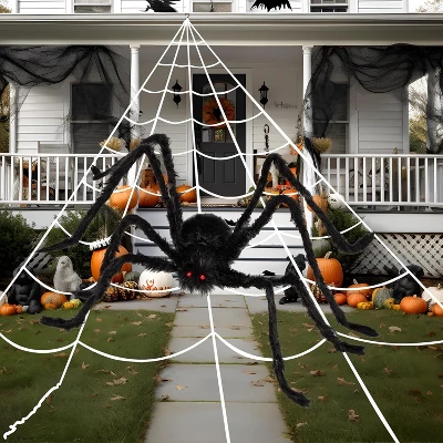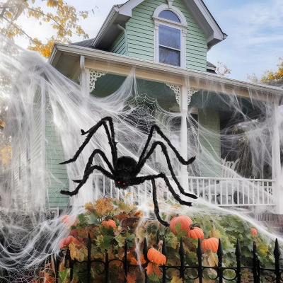- Complete Spider Web Set – Includes one 23×18 ft stretchable cobweb (covers 400 sq ft) and one 59-inch giant hairy spider.