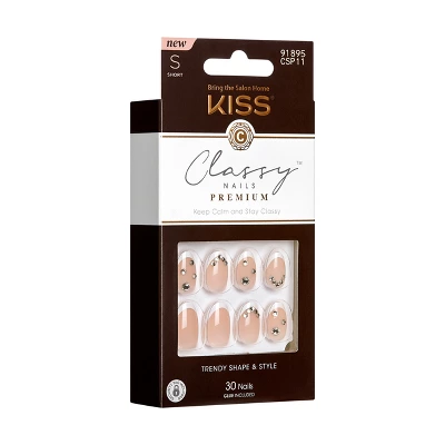 Premium Classy Nails are an elegant combination of modern French designs paired with trendy jewel accents. Our Classy nails just got classier, with a revamp of our stylish French mani in updated, super glam premium designs. DIY French mani with a modern flair in fashionable yet sophisticated lengths and shapes you love, now with 3D accents for a more high-end look. New Premium Classy gel nails are bejeweled with rhinestones, glitter, and more nail art effects.