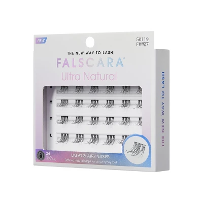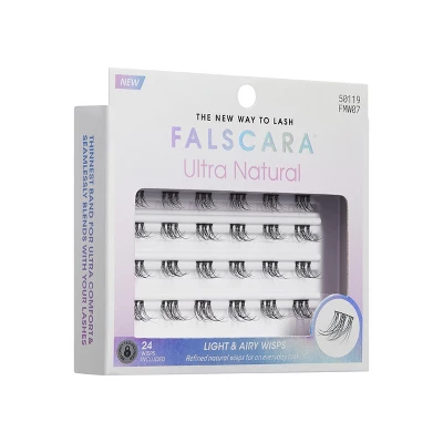 Level up your lash game! We’ve improved our already popular FALSCARA underlash eyelash clusters by creating Ultra Natural Light & Airy Wisps. Sheer, plush, and featherlight false eyelashes look incredibly natural, just like real lash extensions. Unlike traditional fake eyelashes, FALSCARA Ultra Natural Light & Airy Wisps are tiny sections of featherlight lash clusters with a unique flexible black micro-band that goes under your natural lashes for a seamless, natural look.