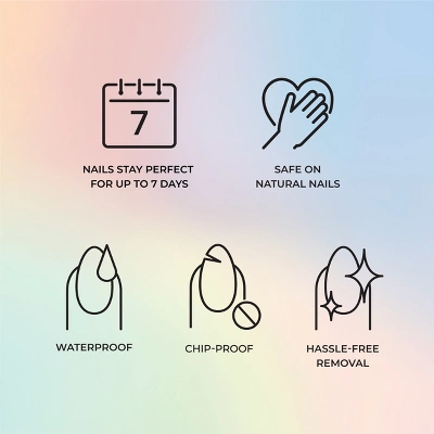 - Takes only minutes to apply and lasts up to 14 days with no damage to natural nails