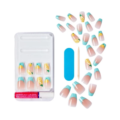 - Nail kit includes 28 fake nails, pink gel nail glue net wt. 2 g (0.07oz.), mini nail file, & manicure stick