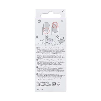 - The EASIEST manicure with pre-applied adhesive – just peel, press & go