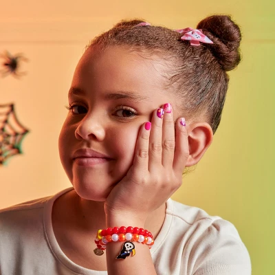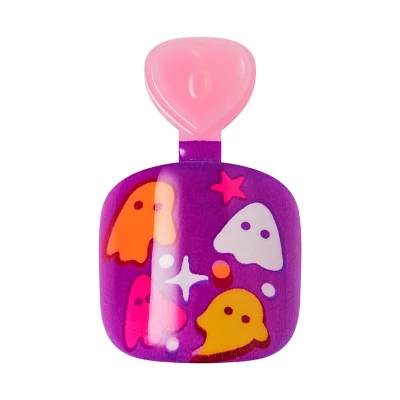 Child-sized pink-and-purple squoval nails glow in the dark and delight tiny fingertips. The ‘Who’s Watchin’ design gives kids a no glue Halloween mani that’s safe, fun, and ideal for costumes, parties, or everyday spooky play. All treats, no tricks! With 20 Halloween-themed press-ons, this kid-friendly kit is mom-approved and mess-free. A fun and festive way to celebrate the season—no polish, no hassle, just boo-tiful nails!