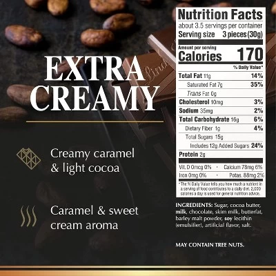 Dive into the refined richness of the Lindt EXCELLENCE Extra Creamy Milk Chocolate Bar. Offering the ultimate chocolate experience, this exceptionally smooth and silky milk chocolate bar is distinguished by a golden brown color, caramel aromas, and delicate flavors reminiscent of cream, vanilla and honey. Indulge in this milk chocolate bar with sparkling wine or Chardonnay, or use it as baking chocolate for rich, gourmet chocolate treats. This complex milk chocolate candy bar also makes a delicious gift for the chocolate connoisseur in your life. The complex flavor and sophisticated texture come in an individually wrapped chocolate candy bar that’s pre-portioned into bite size squares. Lindt chocolate is masterfully crafted using high-quality ingredients from world-renowned regions, embodying the passion and craftsmanship of Lindt Master Chocolatiers.
