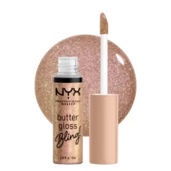 Discover NYX Professional Makeup’s Butter Lip Glosses in its most blinging shades yet. Our non-sticky lip gloss gives your pout a shiny finish. Each vibrant, glistening lip color offers sheer-to-medium coverage. Your lips will be melting over these fan-fave glosses that always deliver a dash of glistening color. Get full, glossy lips without that sticky sensation. Butter Lip Gloss works to soften and condition lips while giving a hint of color and gloss. Simply swipe, smack and show off your gorgeous glossy lips. Can shine by itself or be layered over other lip products for elevated perfection.