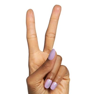 - An iridescent lavender manicure accented by shimmery stars in an extra short round shape