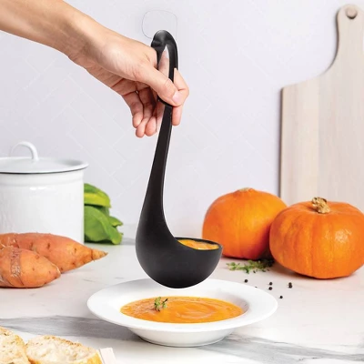 - Swan-shaped ladle that floats gracefully on soups and stews.
