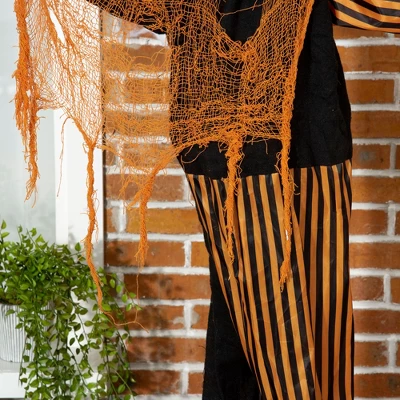 - Halloween Outdoor Decorations Information: Overall Dimensions: 43.25″ W x 7.75″ D x 65.25″ H. 3 x AA Battery (included)