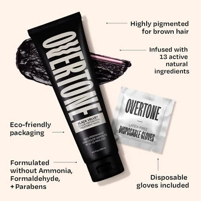 Overtone’s Black Velvet Semi-Permanent Hair Dye and Color Depositing Conditioner Mask is where deep black hair color meets total care. Designed for brown, blonde, and dark hair, it delivers a rich blue black hue—no bleach needed.