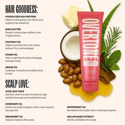 Overtone’s Golden Rose Semi-Permanent Hair Dye and Color Depositing Conditioner Mask is where Rose Gold hair color meets total care. Designed for brown, blonde, and dark hair, it delivers a deep brown hue—no bleach needed.