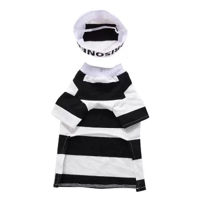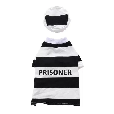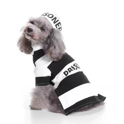 - Features a Striped Black and White Prison Uniform Dog Costume. Great when worn during Halloween or any time of year