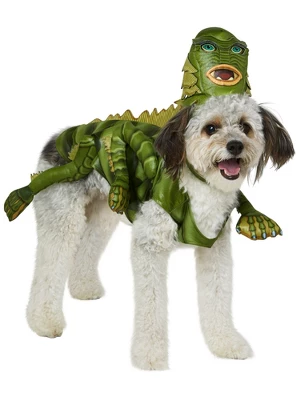 Your pup will be all ready to emerge from the muddy marsh this year when you dress them up in our Creature from the Black Lagoon Gill-man Pet Costume. With this set, you will receive everything your furry friend needs to track mud in the house and haunt the town while all dressed up as a swampy sea creature. Featuring a gruesome reptilian costume and matching headpiece, you do not want to miss out on this creaturely get-up for your dog! Just be sure to follow them around with a towel and a mop!