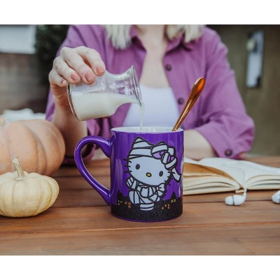 - TRENDY DRINKWARE: Fun Sanrio themed mug featuring Hello Kitty celebnrating Halloween!