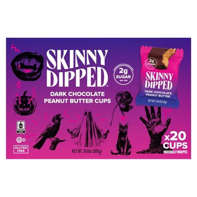 - Your favorite Halloween candy just got a glow-up! SkinnyDipped Cups are the perfect lower sugar, oh-so-delicious anytime treat…no tricks.