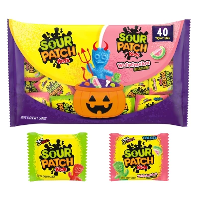 - One pack, 40 treat-size bags, of SOUR PATCH KIDS Original & Watermelon Halloween Candy Variety Pack
