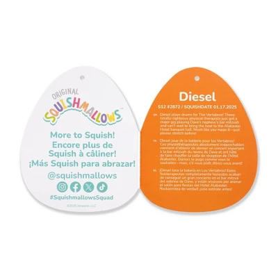Meet your new bestie, Diesel! Each Squishmallow plush comes with its own unique name and bio and makes the perfect cuddly companion for long flights out or comfy nights in. Diesel is only by Original Squishmallows. Join the Squad today!
