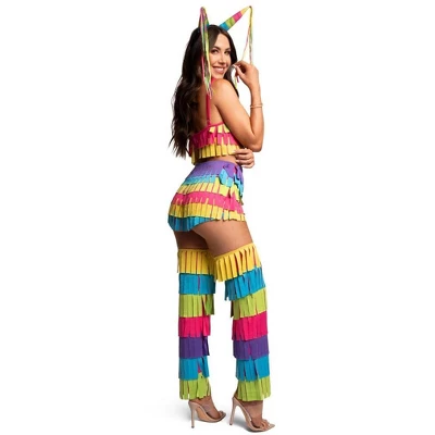 - COLORFUL PIÑATA DESIGN Bring the fun to any Halloween celebration in the Tipsy Elves Womens Piñata Costume. With its bright multicolor design and playful style this comfortable one piece is perfect for parties trick or treating or standing out from the crowd.
