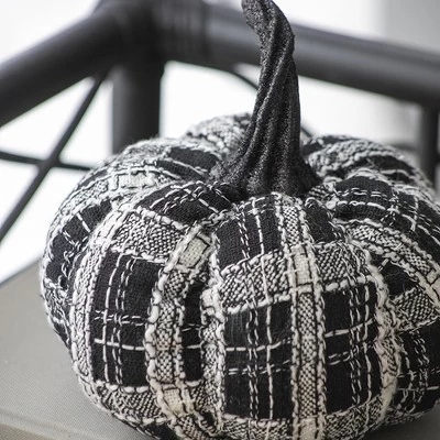 This charming light black and white plaid fabric pumpkin effortlessly blends rustic farmhouse appeal with contemporary style, making it the perfect seasonal accent for modern homes. Featuring an elegant knit plaid motif in a soft monochromatic palette, the decorative piece showcases an authentic fabric stem that adds delightful homespun character. Expertly crafted from high-quality 100% polyester, this versatile pumpkin maintains its perfect shape while offering plush texture and lasting durability. The subtle plaid pattern creates timeless appeal that transitions beautifully from early autumn through Thanksgiving celebrations. Ideal for enhancing living rooms, dining spaces, or entryways, it adds just the right touch of festive warmth to any interior. Whether displayed as a standalone statement or grouped with other seasonal decor, this artfully designed pumpkin elevates your autumn styling with its understated elegance and designer-quality craftsmanship that will be cherished season after season.