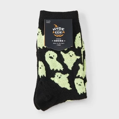 Step into the festive season with style wearing the Women’s Glow – in – the – Dark Ghosts Halloween Crew Socks from Hyde & EEK Boutique™ in Black. Featuring an adorably eerie dark ghost design, these glow-in-the-dark crew socks blend festive fun with ultra-soft comfort. Crafted from midweight knit fabric, they’re perfect for keeping your feet warm during crisp fall days and haunted movie marathons alike. The cozy texture and playful graphic make them a go-to accessory for Halloween lovers who want to add a subtle seasonal touch to their loungewear or casual looks.