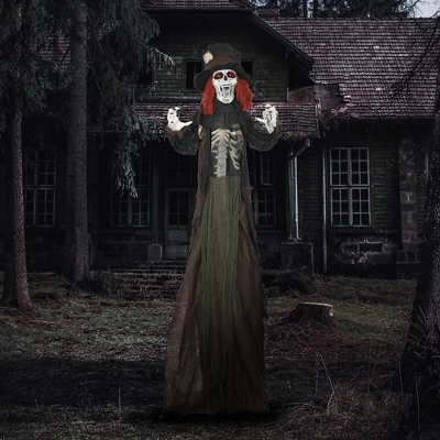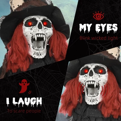 This animated Halloween decoration is a must-have for spooky setups, featuring a zombie with a realistic skeleton chest and scary sharp teeth that instantly builds a frightening atmosphere in your haunted house. Once powered on, it’s activated by touch or loud sounds—like the screams of scared trespassers—turning trick-or-treater visits into thrilling, memorable frights. When it senses someone nearby, it comes alive: shaking, cackling, making eerie zombie noises, and glowing red eyes, which takes your outdoor Halloween decoration’s scare factor to the next level. Powered by 3x AA batteries (not included), it’s super convenient to place anywhere—no need to hunt for power outlets—and works great indoors or in covered outdoor spaces.